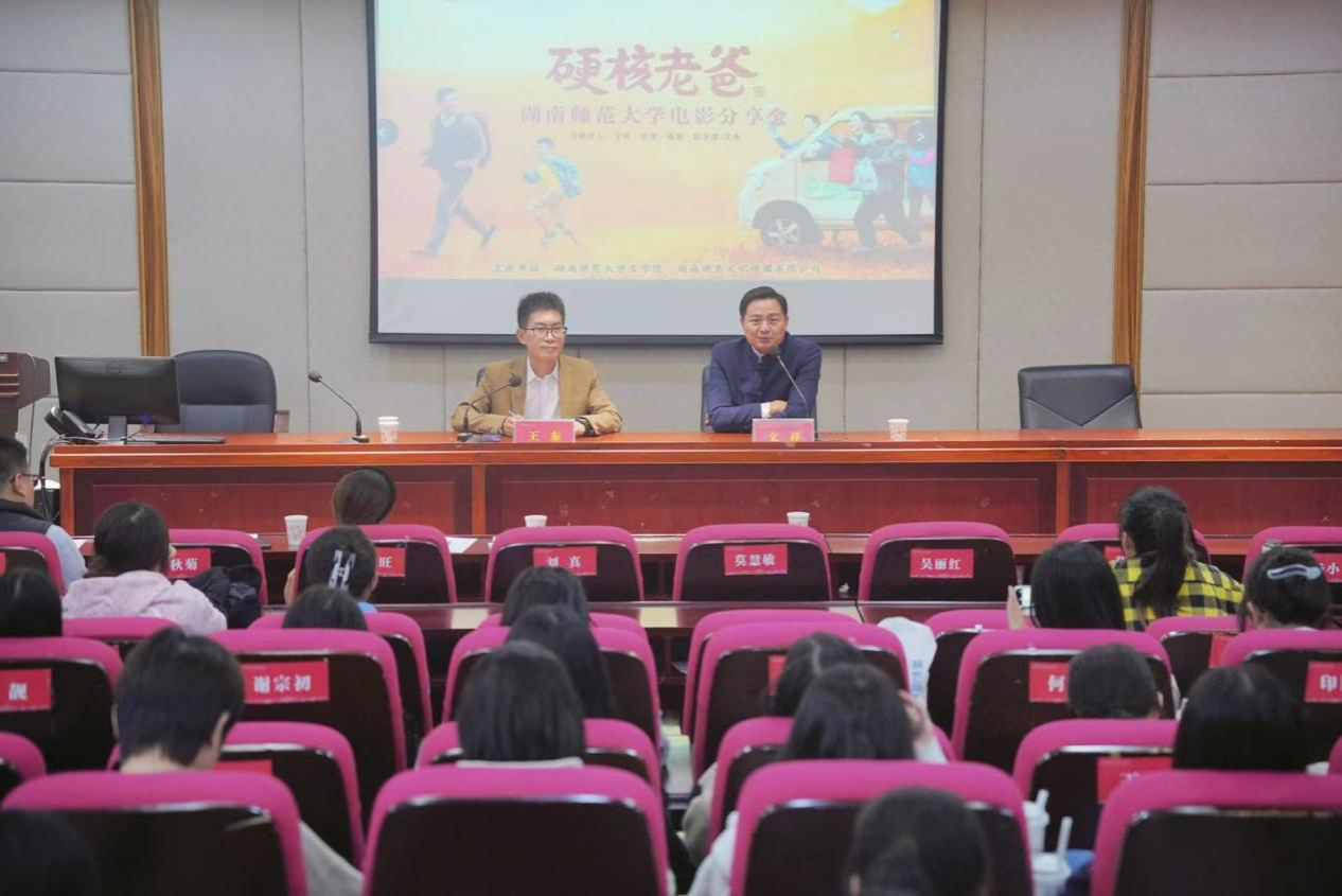 (通讯员刘库)11月10日下午,由beat365体育官方网站、湖南砚泉文化传媒有限公司主办的电影《硬核老爸》观影分享会暨文祥“电影追梦人”主题演讲在beat365体育官方网站216教室开展。湖南砚泉文化传媒有限公司董事长文祥,湖南省电影评论协会秘书长王东,beat365体育官方网站党委副书记刘宓蜜,beat365体育官方网站戏剧影视文学系专任教师刘库,beat365体育官方网站本科生与研究生等参加活动。活动由省广播电视台导演、省电影评论协会秘书长王东主持。